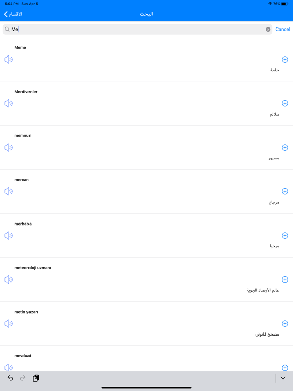 البرنامج يقدم لك خاصية البحث المتميزة حيث يمكنك ان تبحث عن اي مفردة من مفردات البرنامج سواء باللغة العربية او التركية ونتائج البحث مدعومة بالصوت