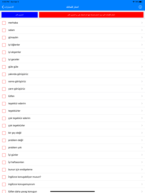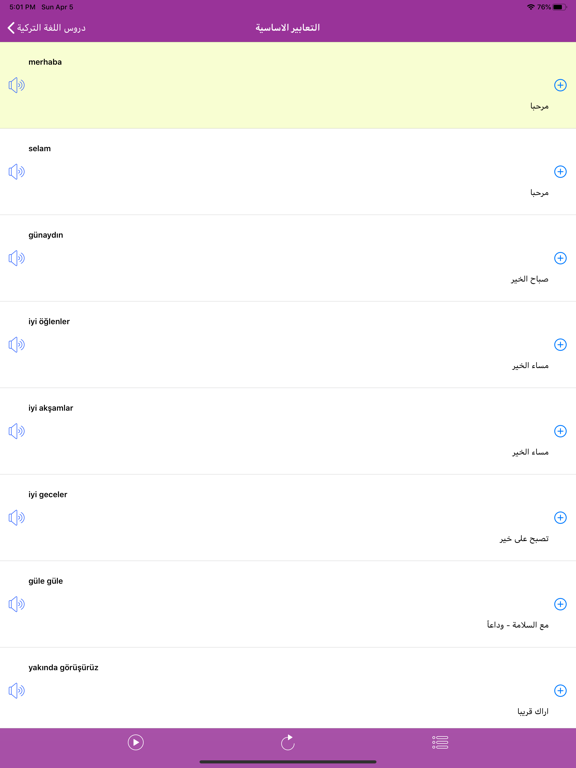 البرنامج يحتوي على عدد هائل من الكلمات والعبارات التركية والتي هي الاهم لبناء اساس قوي وصحيح في هذه اللغة العالمية والاكثر استخدام في الحياة اليومية