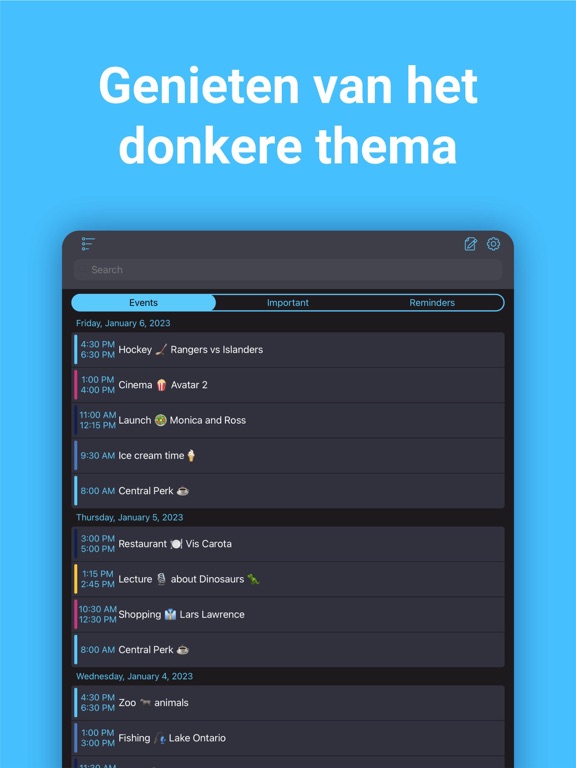 • Synchronisatie Across Devices: Je hele planning wordt naadloos gesynchroniseerd op je iPhone, iPad, Mac en Apple Watch. Overal en altijd toegang tot je Agenda.