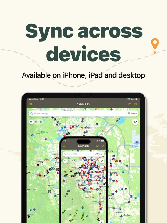 We help you find and filter places and services with or without internet connection. Tents, RV resorts, parking lots, fuel, rest areas, repairs, tunnels, and even inclines. Get extensive filters and thousands of unique points you’ll only find on Camp & RV.