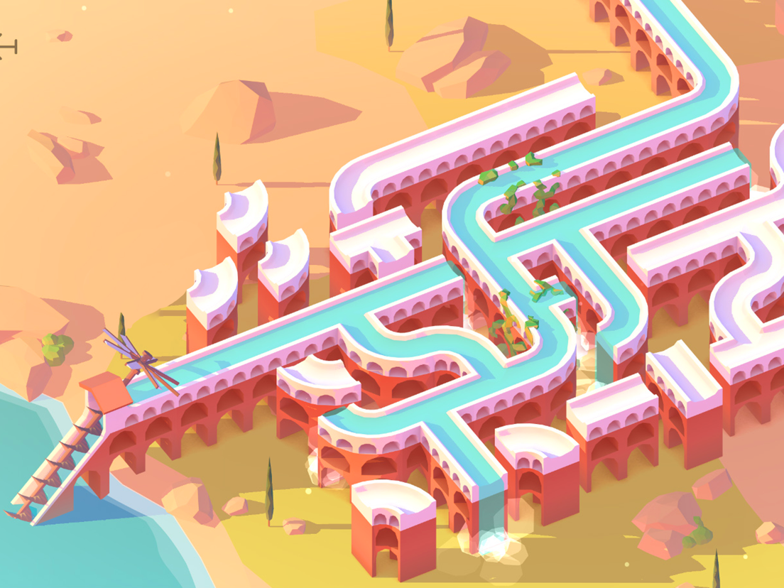 - Tap aqueduct pieces to rotate and connect them to form a complete chain.