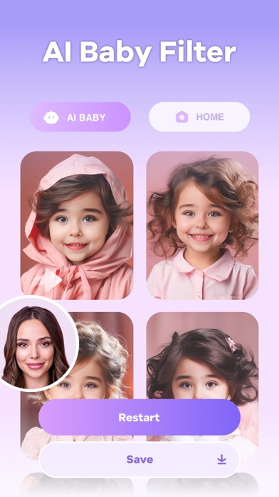 With our AI Generate technology, you could blend your and your partner's faces to see what your future baby might look like. There are also a variety of photo scenes to experience, come and try it! Share your adorable creations with friends and family, and let the excitement of your Future Baby journey begin!