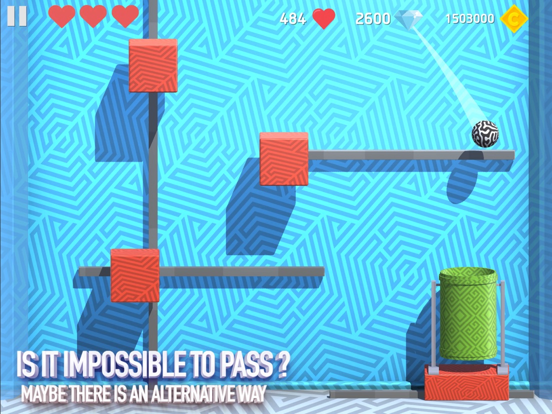 Maybe you can think of some levels as impossible. Maybe you must find hidden alternative way. Use your wit.