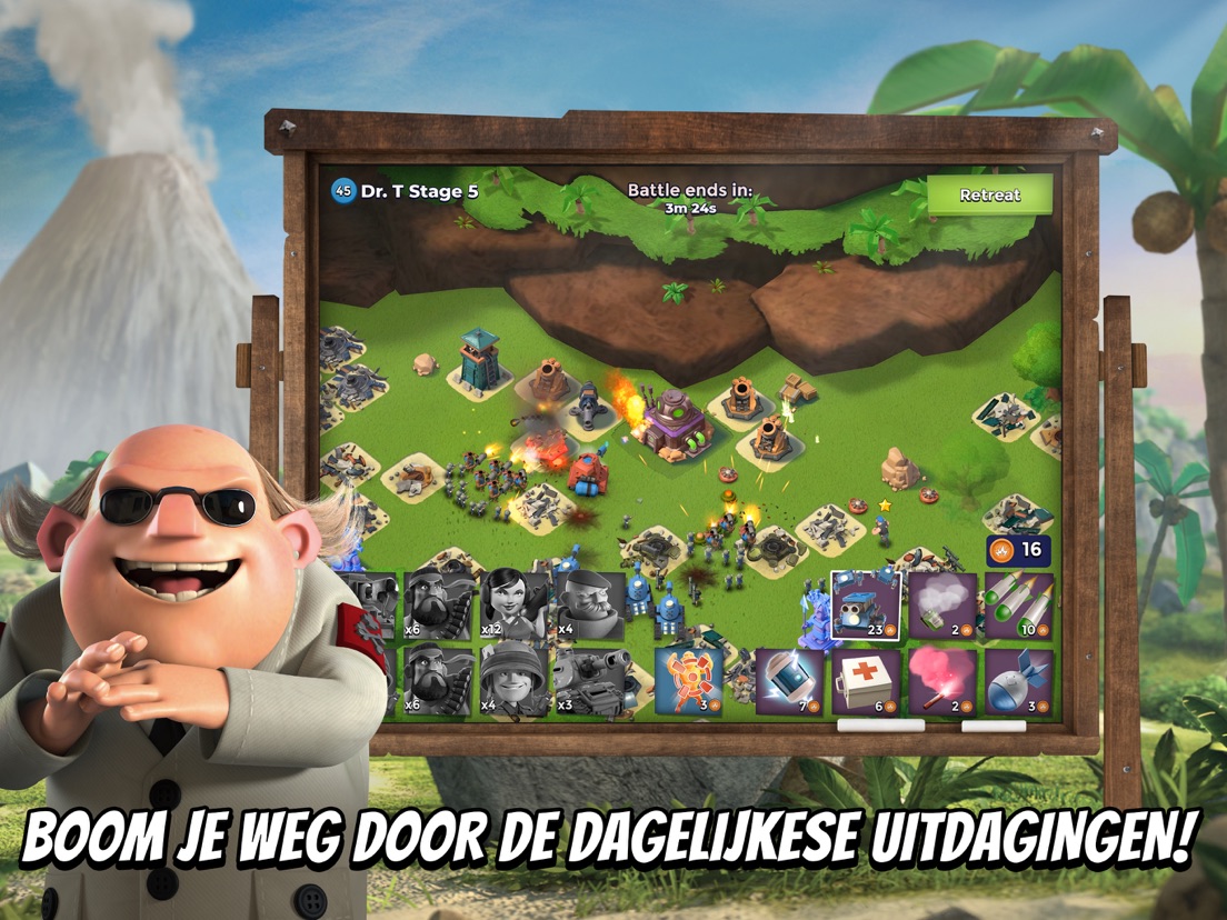 In deze ongeëvenaarde, strategische vechtgame moet je slim én sterk zijn om kans te maken tegen de Zwarte garde. Val vijandelijke basissen aan om onderdrukte eilandbewoners te bevrijden en ontgrendel de geheimen van dit tropische paradijs. Richt een gevechtsgroep op met spelers uit de hele wereld en neem het samen op tegen de vijand. Verken, bedenk een strijdplan en bestorm het strand in BOOM BEACH!