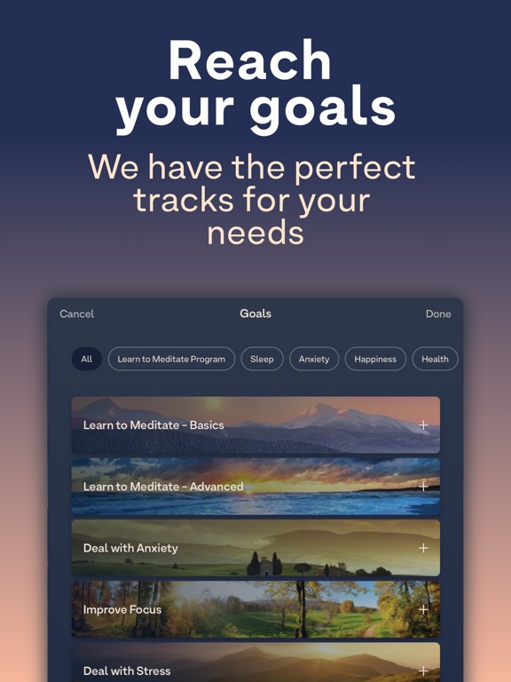 Onze 7-daagse, 30-daagse en 90-daagse leermeditatie-programma's laten je kennismaken met dagelijkse meditaties die gemakkelijk te volgen en rustgevend zijn - de meeste nieuwe mediteerders merken snel dat ze verslaafd zijn aan de gewoonte.