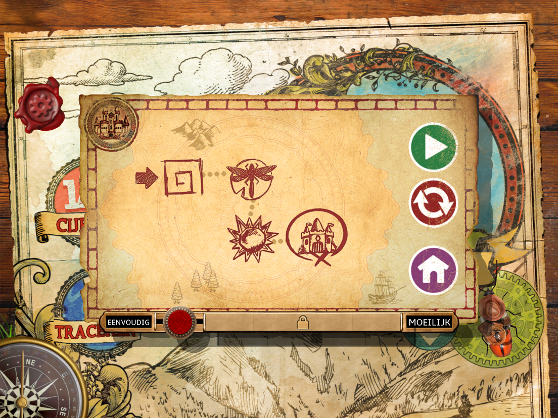• Speel 4 mini-avonturen met Letters, Kleuren, Cijfers en Overtrekken.