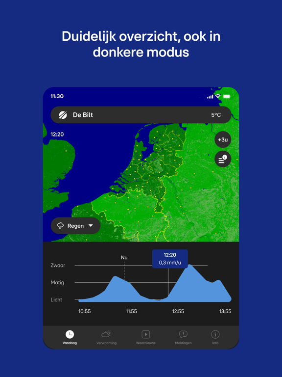 De Buienradar app is geschikt voor iPhone en iPad. Via onze handige widgets en watch app kan je snel zien of het binnenkort gaat regenen zonder de app te openen.