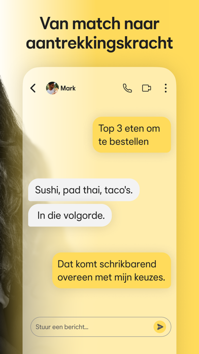 Bumble is een gratis app om (andere) singles te ontmoeten en contacten aan te gaan die gebaseerd zijn op wederzijds respect en vertrouwen. Of je nu op zoek bent naar de ware of liever casual met iemand date, met Bumble kom je in contact met echte mensen voor een echte relatie.