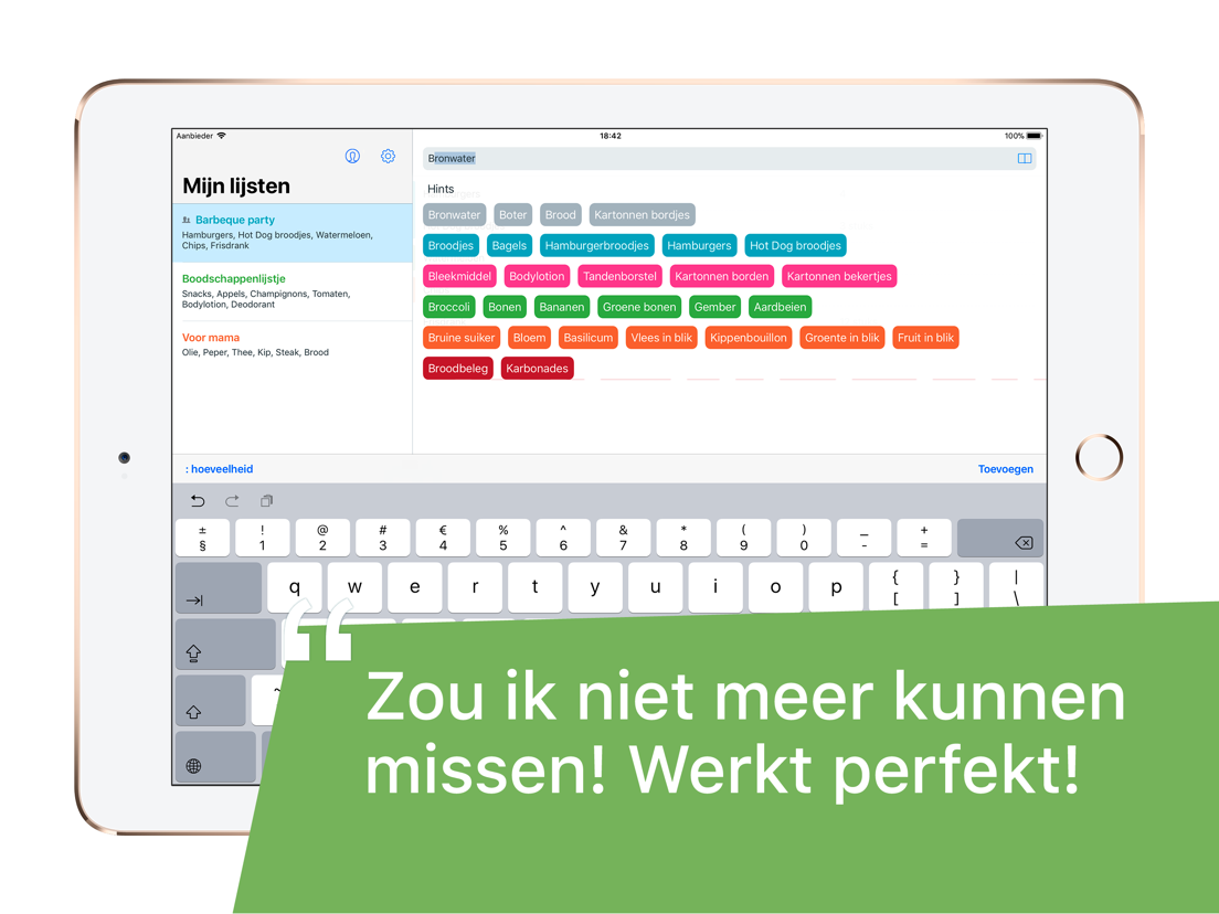 * Slimme suggesties: de app geeft automatisch een suggestie voor een woord zodra je een paar letters invoert, zodat je snel items aan een lijstje kan toevoegen. De suggesties in het ‘product toevoegen’-gedeelte weerspiegelen je eigen dagelijkse gewoontes;