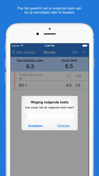 Met CijferHulp kun je gemakkelijk bijhouden wat jouw gemiddelde cijfers zijn voor al jouw vakken. Je kunt ook invullen welk cijfer je als doel hebt om te behalen en CijferHulp vertelt je welk cijfer je op je volgende toets moet halen om op jouw doelcijfer uit te komen.