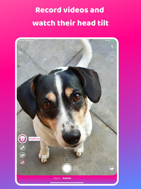 Play sounds from the camera and get your dog's attention every time! Try over 100+ sounds and capture their head tilts as a photo or video.