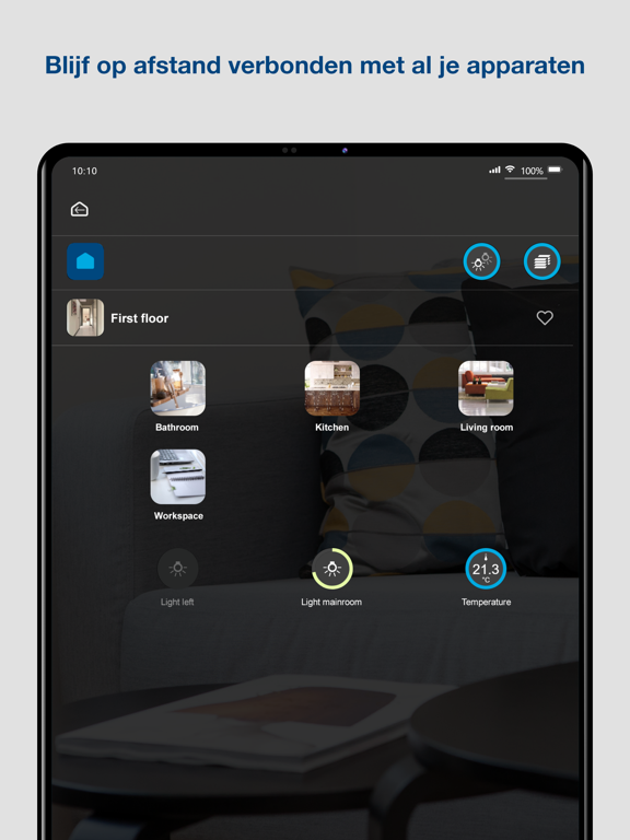 Pas uw domovea-widgets aan en maak een lijst met favorieten op basis van uw gewoonten. Van huis weggaan? Klik op het pictogram om de Leaving home scene te activeren.Selecteer verschillende rollen, domovea creëert voor ieder lid een persoonlijke relatie met de woning. Speciale instellingen voor kinderen nodig? Vlug en eenvoudig geregeld!