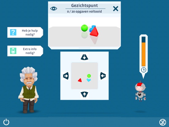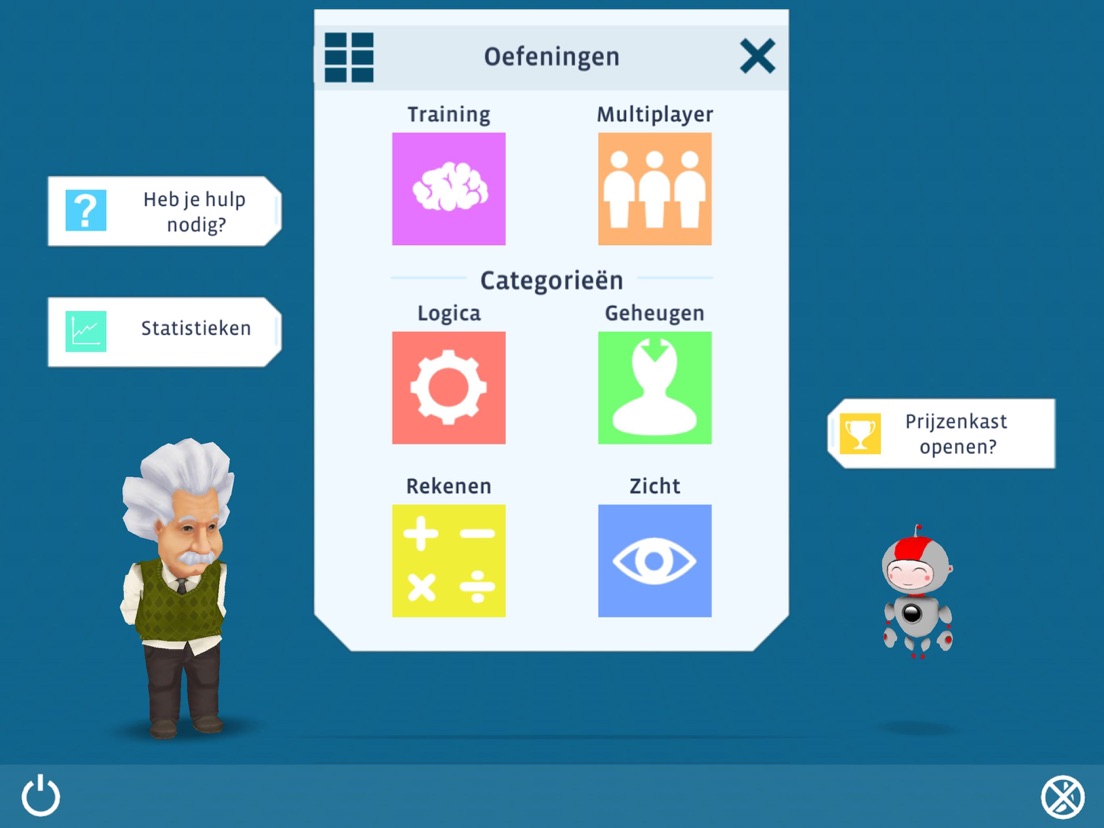 Albert Einstein en zijn schattige assistent Robo helpen je bij alle kanten van het spel. Ze schieten je te hulp als je ze nodig hebt door de oefeningen uit te leggen en door je wetenschappelijke achtergrondinformatie te geven. Op deze manier motiveren ze je om je hersenen jong en in topconditie te houden.