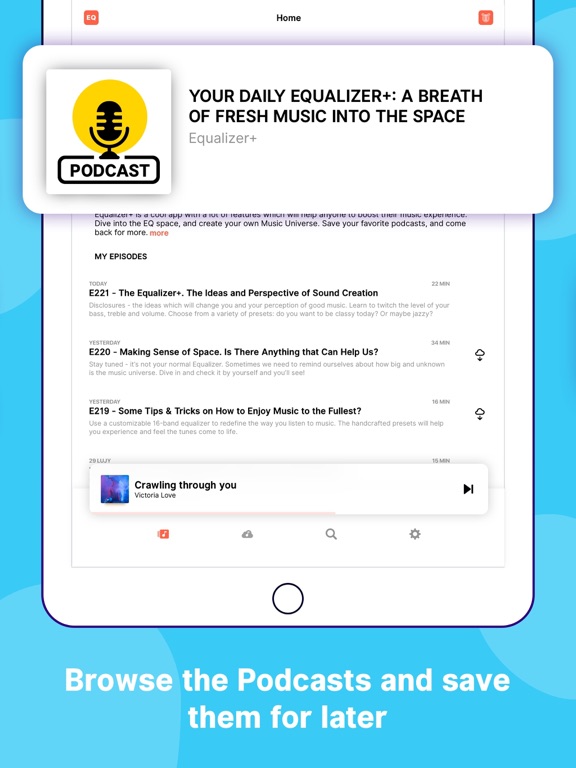 Equalizer+ is not just for music – you can save your favorite podcasts and books in your personal library, too!