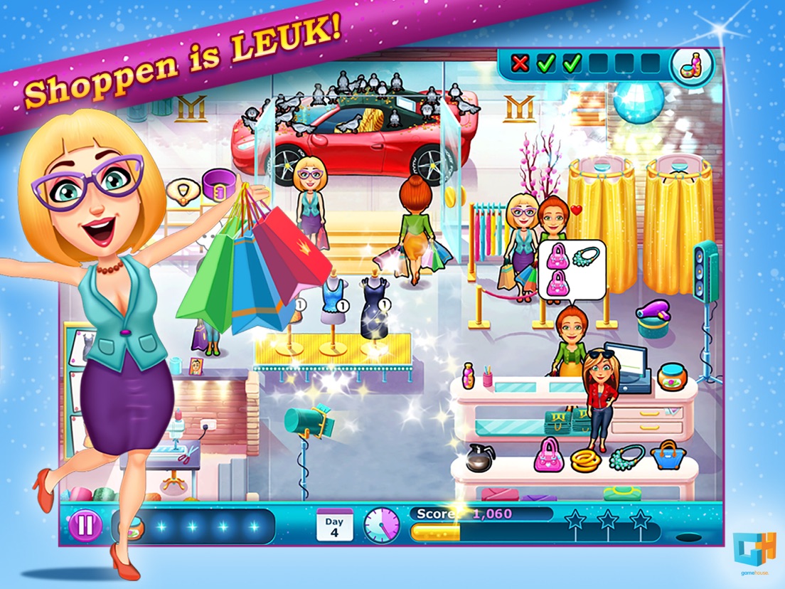 - Voltooi 4 spannende time management levels in een prachtige boetiek
