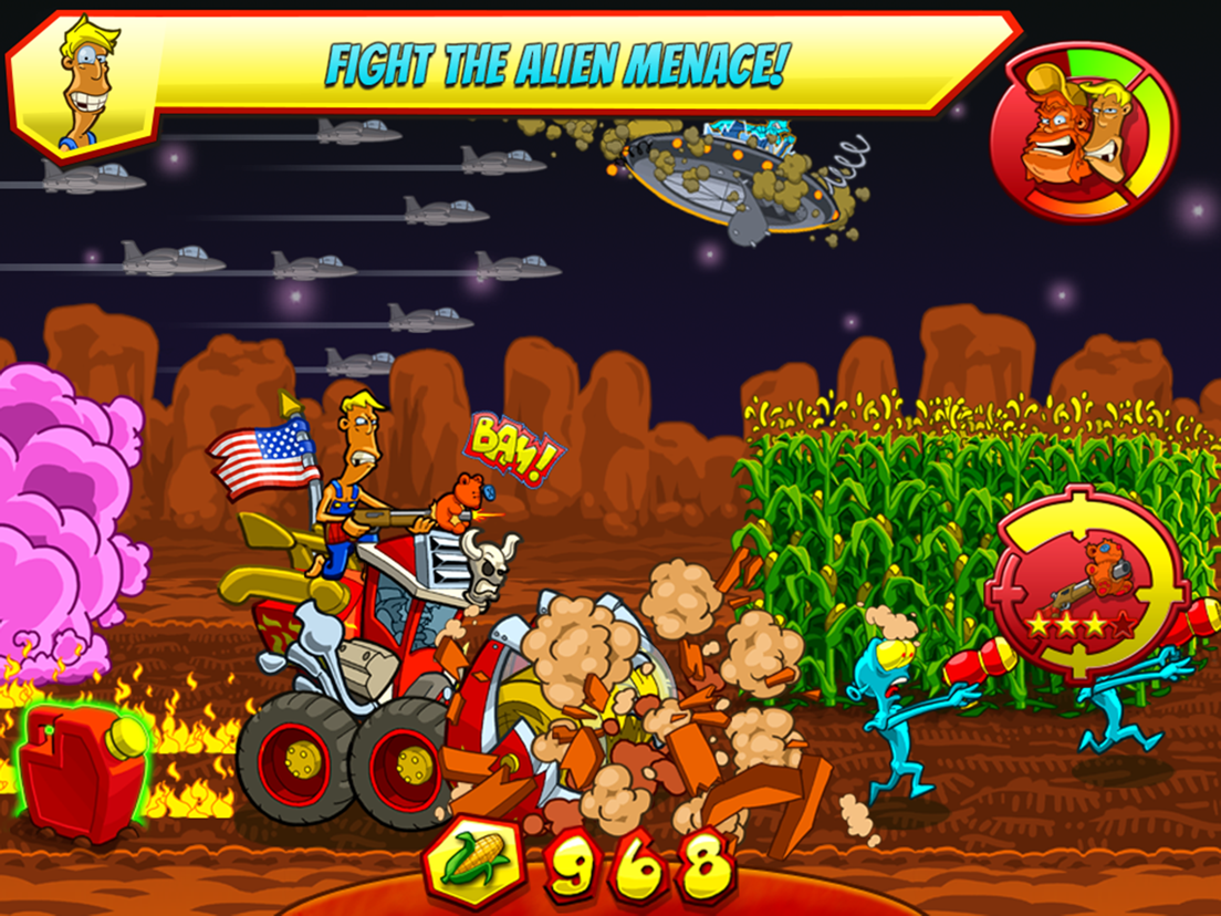 Help Pops, Joe and Otis to defeat the corn-grubbing monsters from outer space!