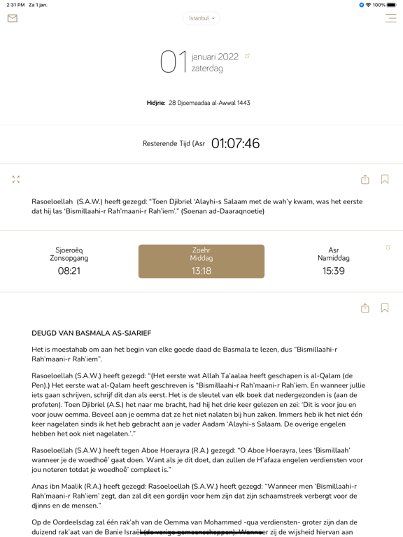 * Betrouwbare Gebedstijden