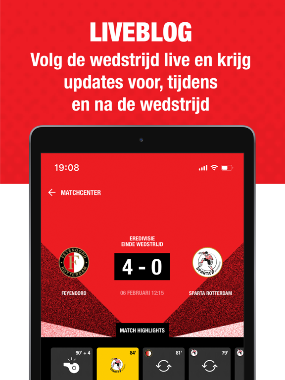 Tijdens wedstrijddagen is de Feyenoord App dé plek om de wedstrijd van Feyenoord 1 te volgen.