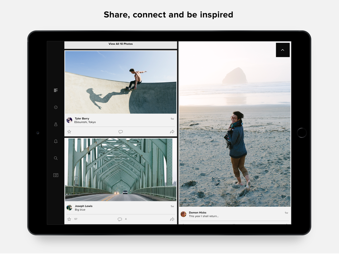 • Organization and sharing made simple. Browse with ease, select and organize hundreds of photos with one gesture, and share in seconds.