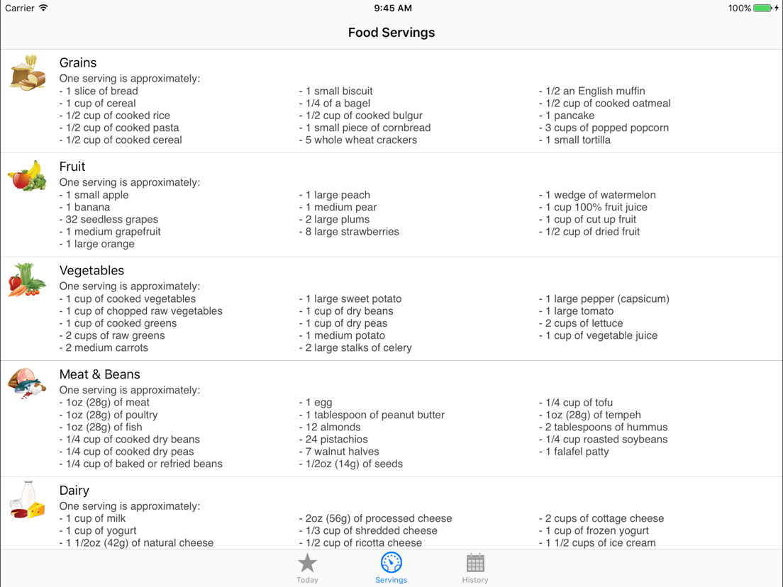 - Track all the major food groups