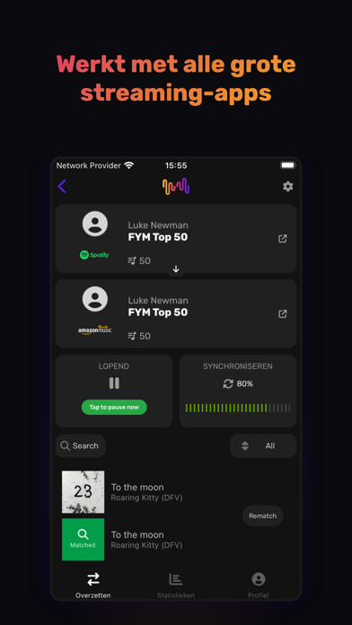 • Playlists zwischen Spotify, YouTube Music, TIDAL, Amazon Music und weiteren Diensten verschieben