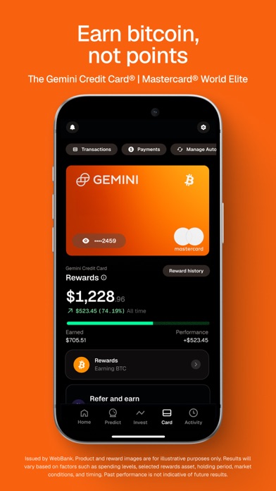 The Bitcoin Credit Card™ is a trademark of Gemini used in connection with the Gemini Credit Card®, which is issued by WebBank.