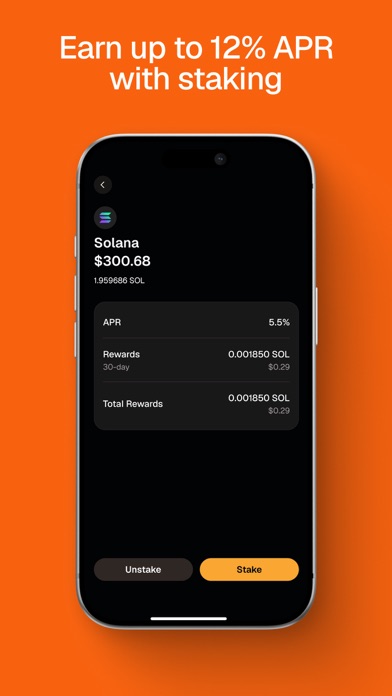 Put your crypto to work. Stake supported assets including Ethereum (ETH) & Solana (SOL) in just a few taps & earn rewards directly in the app. For US customers only excluding New York.