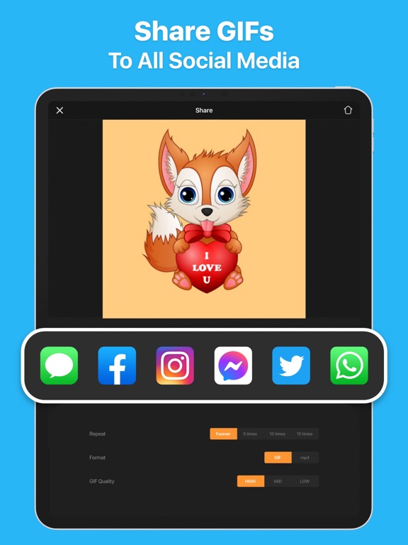 ■ Share GIFs on Instagram, Facebook, Twitter, Messenger & more.