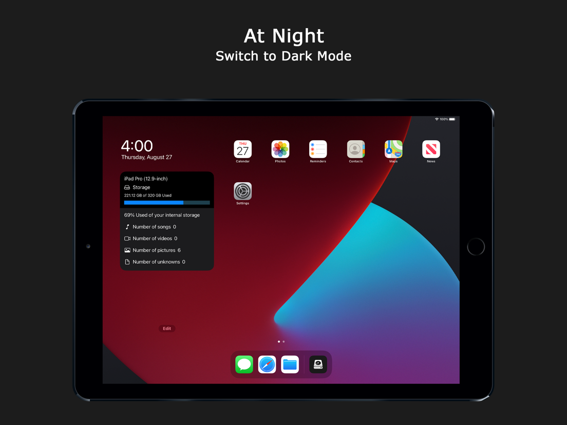 You can choose up to 27 widgets to display on your Home Screen, Lock Screen, or in StandBy mode. Place beautifully designed iOS widgets anywhere you like, keeping your storage information always within sight.