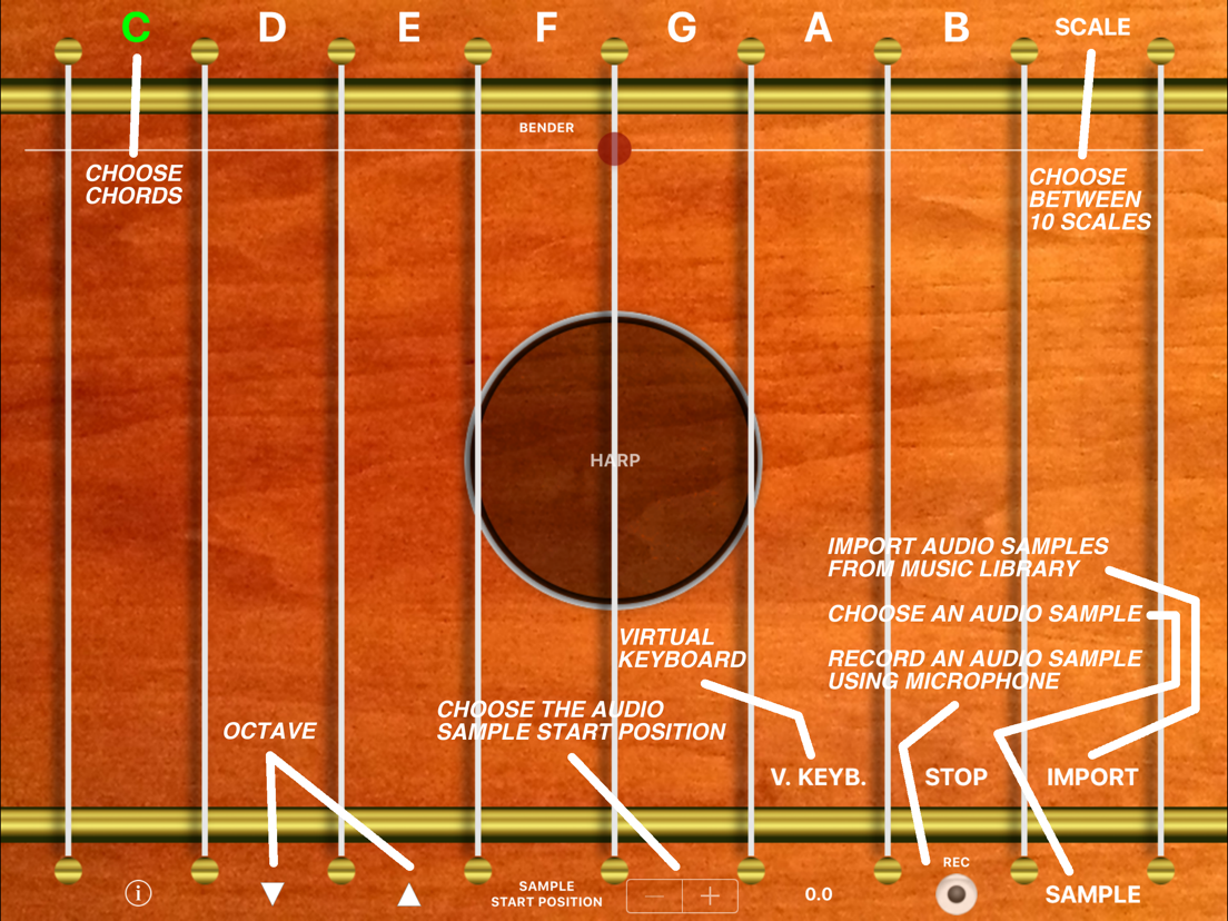 "harpSampler" trasforma il Vostro dispositivo in una arpa professionale multi-touch con campionatore di suoni.
