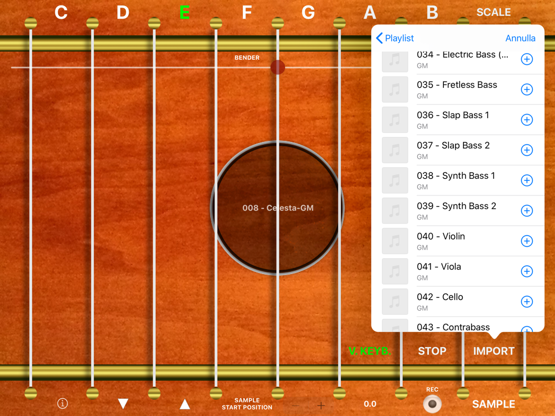 - Importazione di un qualunque suono e generazione automatica dello strumento musicale (8 ottave)