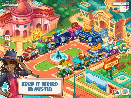 Build your food truck empire from an empty lot into a destination for foodies! Hire trucks to cook the most popular street foods from all over. Reinvest your profits to upgrade your equipment and improve your park. Travel the world and compete in food tournaments. Visit friends and help them unlock new recipes, all while earning idle profits from your food truck park.