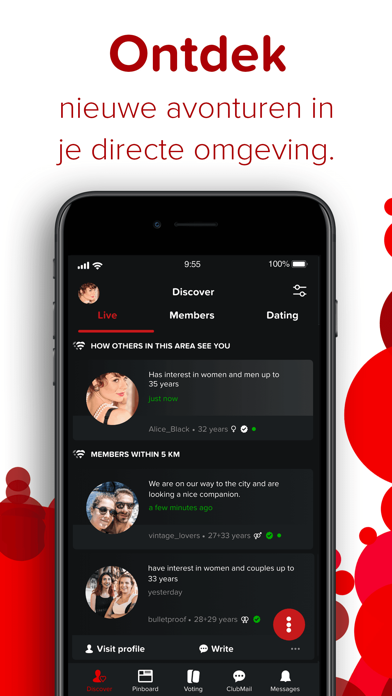 • Messenger: Flirt veilig en anoniem met mannen en vrouwen in onze Club-messenger, verstuur foto's en unieke emoji's