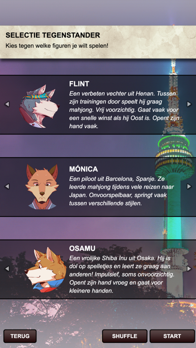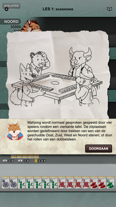 Dit is een volledige implementatie van de Japanse Mahjong, niet alleen een spel voor het matchen van tegels. Een leuke, strategische variant van het klassieke Chinese spel voor 4 spelers!