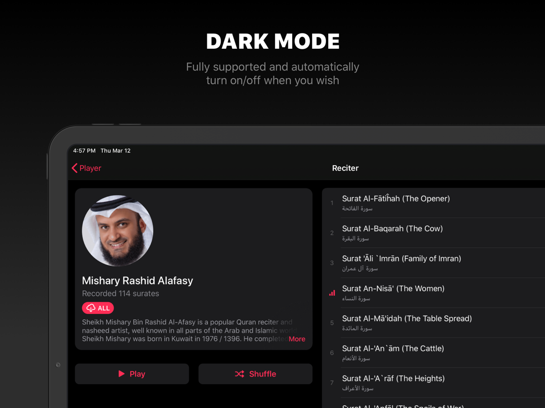 Thanks to the technology Quran Pro supports AirPlay and CarPlay.