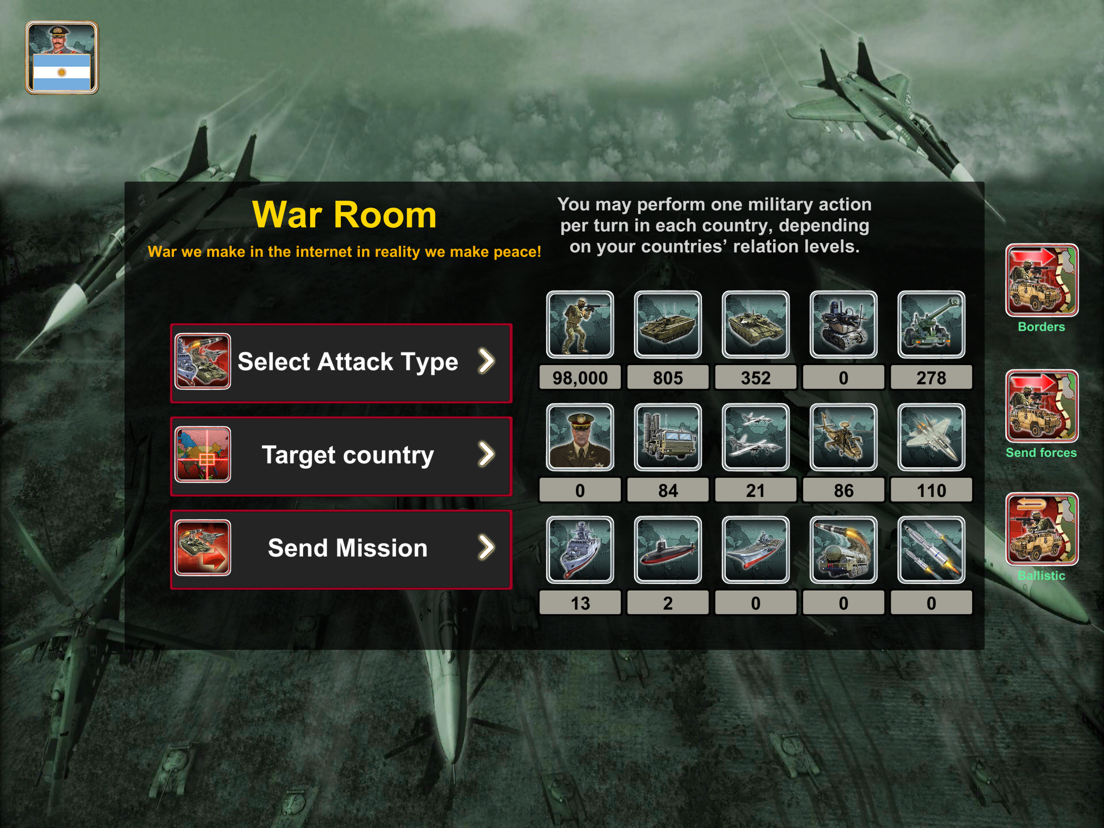 Selecteer uw land dat u wilt leiden en speel tegen de slimme AI-vijanden. Met uitstekende leiderschapskwaliteiten, strategie en tactieken, zou u uw land naar de overwinning kunnen leiden?