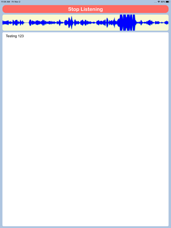 The transcription process takes a few seconds to start, so tap "Start Listening" a little before you want the speech to text conversion to actually begin.