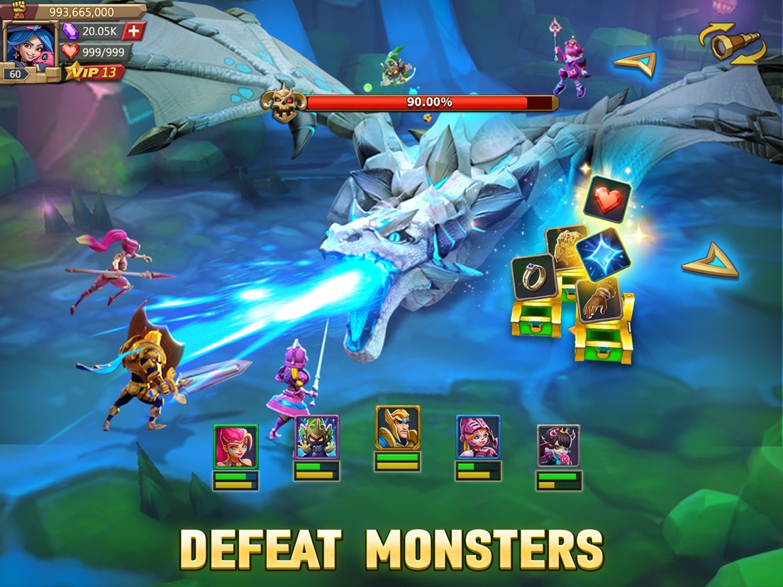 4 different troop types, and 6 different troop formations for you to choose from! Plan your lineups, take advantage of the counter system, and pair your troops with the right Heroes! Perfect your strategy to defeat your enemies!