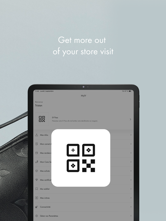 Use your LV Pass personal QR code to enhance your in-store visit, access your in-store and online purchase history, and to collect your online orders