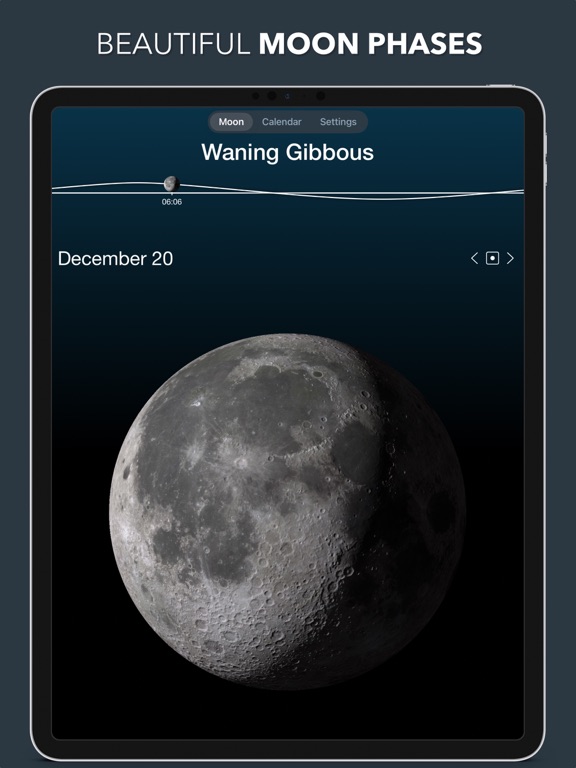 Experience a beautiful Liquid Glass design and real-time, 3D-lit Moon renderings that make the Moon feel alive on your device. Effortlessly explore any date—past or future— to see precise lunar data, illumination, distance, and the Lunar Zodiac sign for that day.