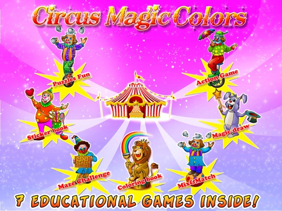 Note: First 10 circus characters, 10 stickers and the first few stages of each game are completely free. All games and features are available with easy to use in-app purchase inside the application. Purchasing full version also removes all ads.