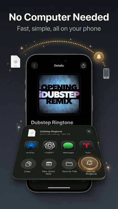 Import a file, trim the audio to under 30 seconds, and turn it into a custom ringtone, text tone, or alert sound for your iPhone.