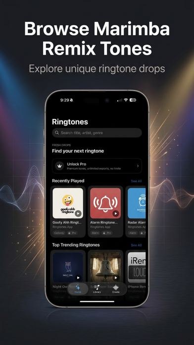 Browse a growing library of marimba remixes, ringtone edits, text tones, and alert sounds, or make your own from the content you already have.
