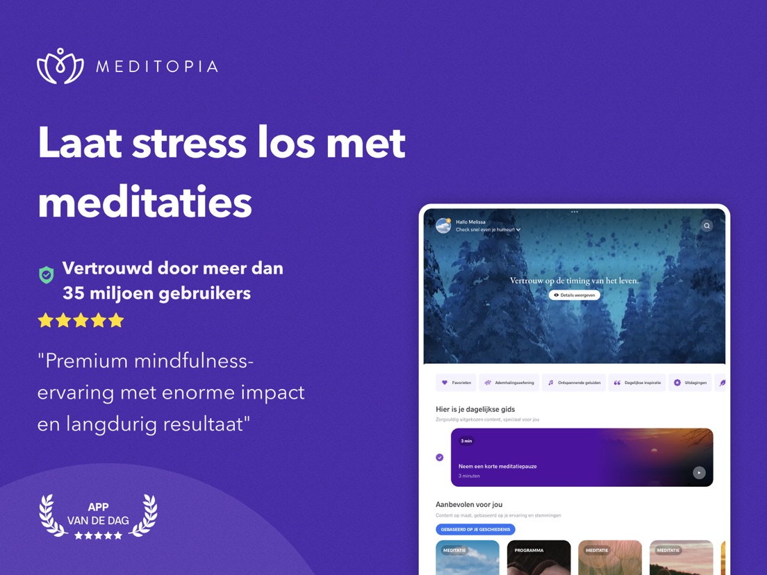Er zijn honderden meditatie-apps om uit te kiezen, wat maakt Meditopia zo speciaal? Nou, in tegenstelling tot de meeste andere opties biedt Meditopia meer dan alleen een kortetermijnoplossing om in slaap te vallen en te ontspannen. We bieden onze leden meer dan 1000 meditaties die dieper ingaan op wat wij als mens elke dag doormaken, ongeacht leeftijd, achtergrond of ervaring.