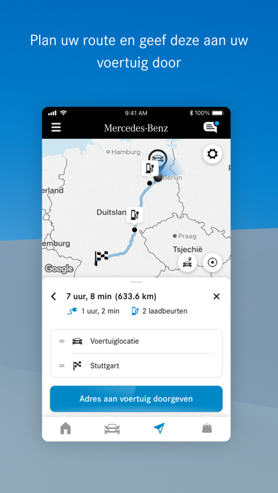 GEMAKKELIJK ROUTES PLANNEN: Plan uw route op gemak en stuur eenvoudig adressen naar uw Mercedes via de app. Dit betekent dat u meteen kunt instappen en wegrijden.