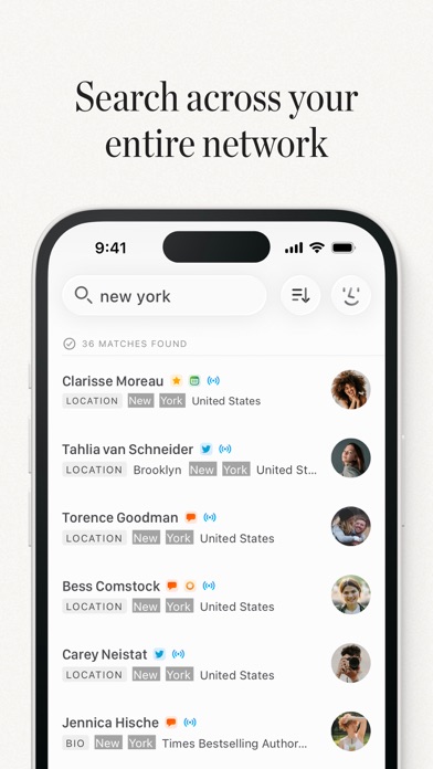 Mesh helps you show up informed by creating and automatically updating beautiful cards for each of your contacts with context such as profile photos, bios, education and work history, location, and social profiles. In addition, you can use powerful features such as natural-language search, dictation and note taking, reminders, birthday notifications, news articles about people you know, reconnection cadences, and more to deepen your relationships over time.