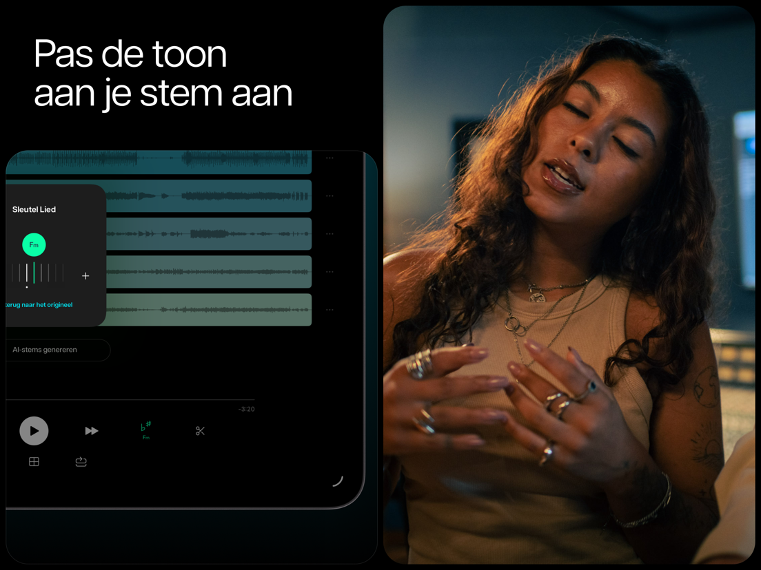 -Exporteren: exporteer en deel audiomixen en gescheiden stems, inclusief metronoom-kliktracks. Exporteer audio-stems die je kunt gebruiken in een andere trackmaker of in onze zangverwijderaar.