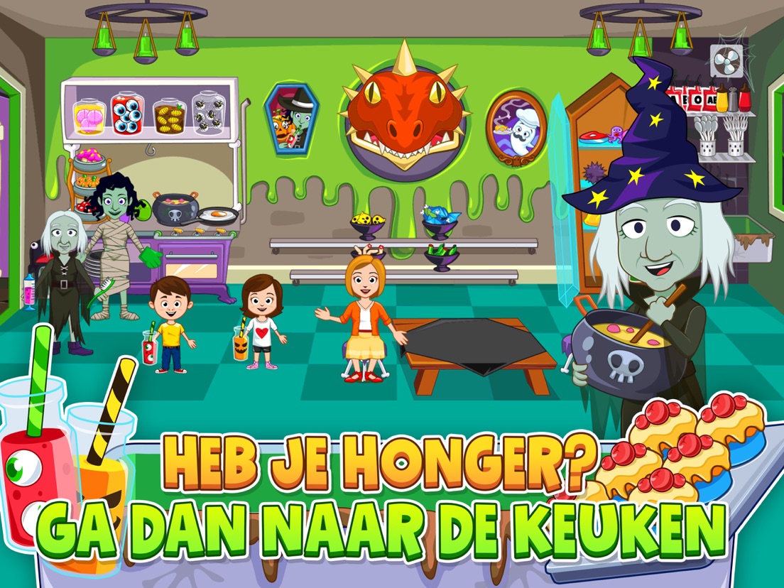 My Towns gigantische spookhuis heeft veel kamers om te ontdekken en om in te spelen. Doe het licht uit en alle kamers veranderen compleet en maken van het woonhuis een spookhuis. Ontdek de vreemde wezens onder je bed, in de muur en in de douche. Bedenk een avontuur om de dochter van de heks te redden uit de spookzolder, en nog veel meer…