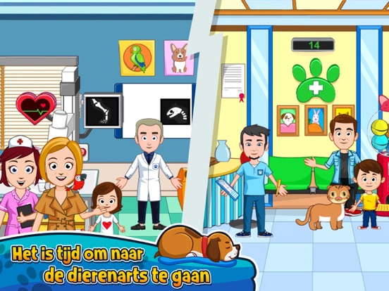 My Town : Troeteldieren heeft alles om voor je troeteldier te kunnen zorgen. Speel met poezen, honden, vogels en hamsters. Verbeeld je dat je je hond adopteert, hem aankleedt en ontdek alle verborgen en spannende plekken. Laat je hond uit in het uitlaatgebied in het park, maar vergeet niet om de poep op te ruimen. Doe ze in bad en zorg voor ze als ze bij de dierenarts pijn wordt gedaan. Ontdek alle locaties en verzin met elk spel je eigen verhaal.