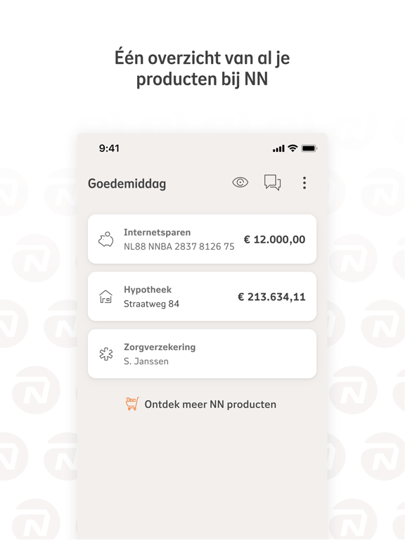 Of je nu onderweg bent, thuis op de bank zit of snel iets wilt regelen: de NN App is jouw digitale partner voor alles wat met je geld te maken heeft. In controle over je financiën op jouw manier.